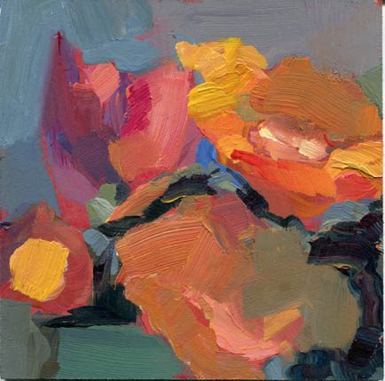 I started painting in one type of light and finished in another. still life, acrylic, 6" x 6"